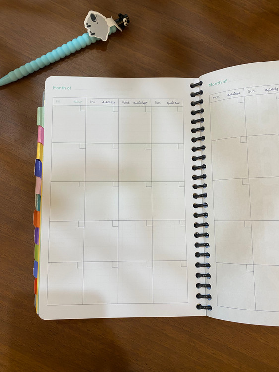سایر توضیحات: -صفحات شامل: لیست فیلم و کتاب و آرزوها -اهداف سالیانه و ماهیانه و هفتگی -برنامه ریزی کلی سالانه و روزانه -جمع بندی هفتگی و ماهیانه -ردیاب عادات و خواب -یک صفحه استیکر -دیوایدرهای جداکننده ماهانه