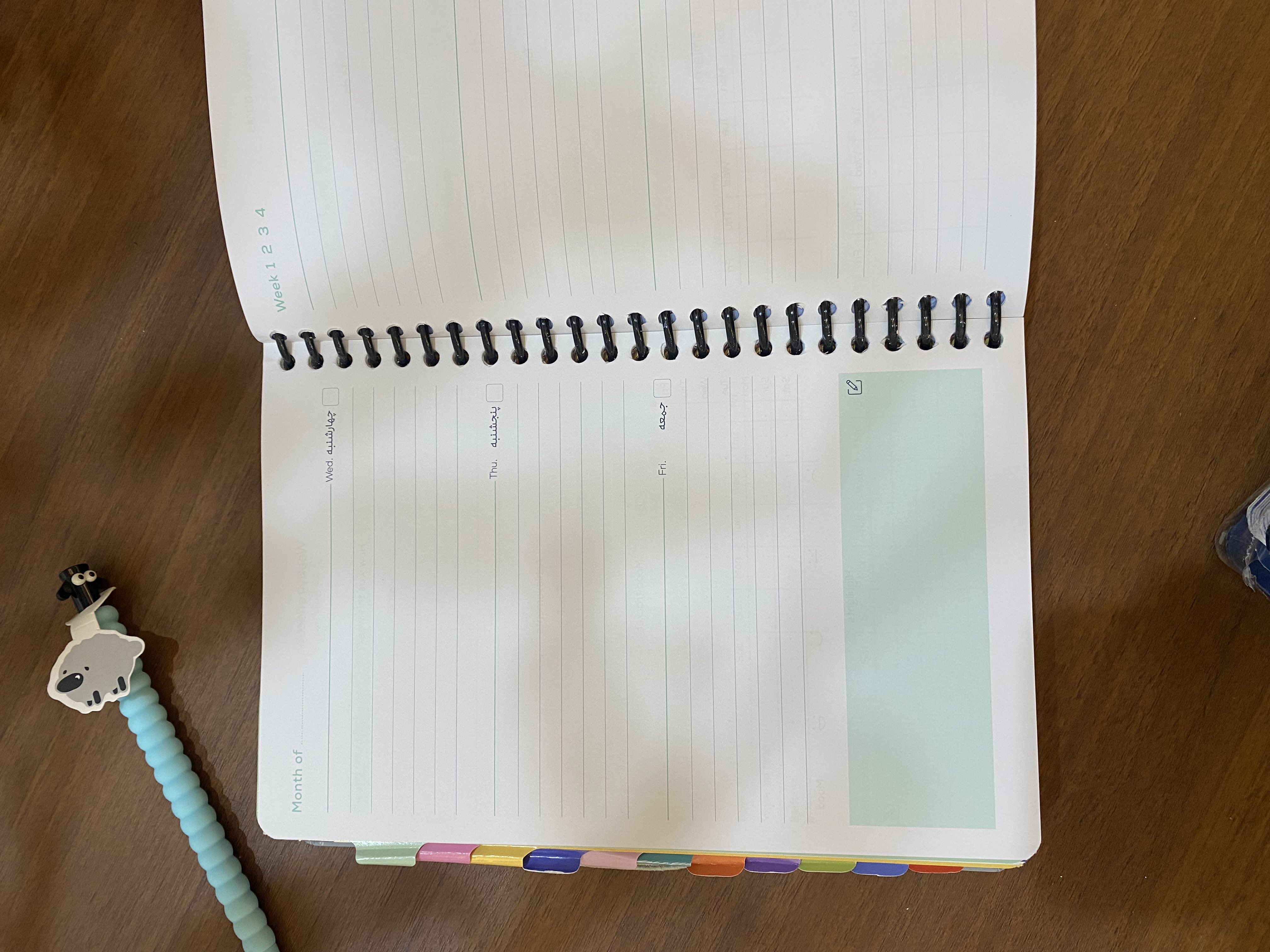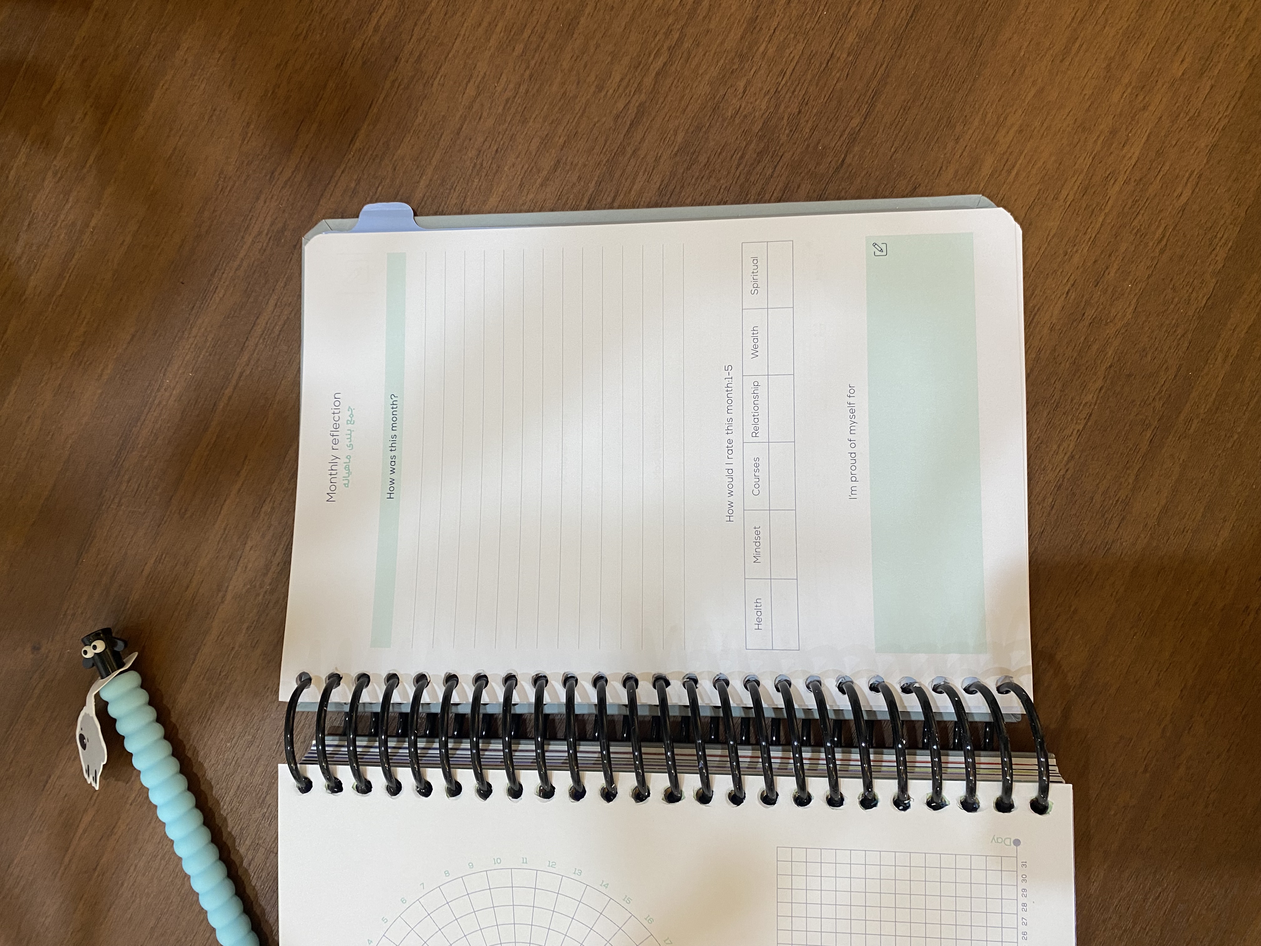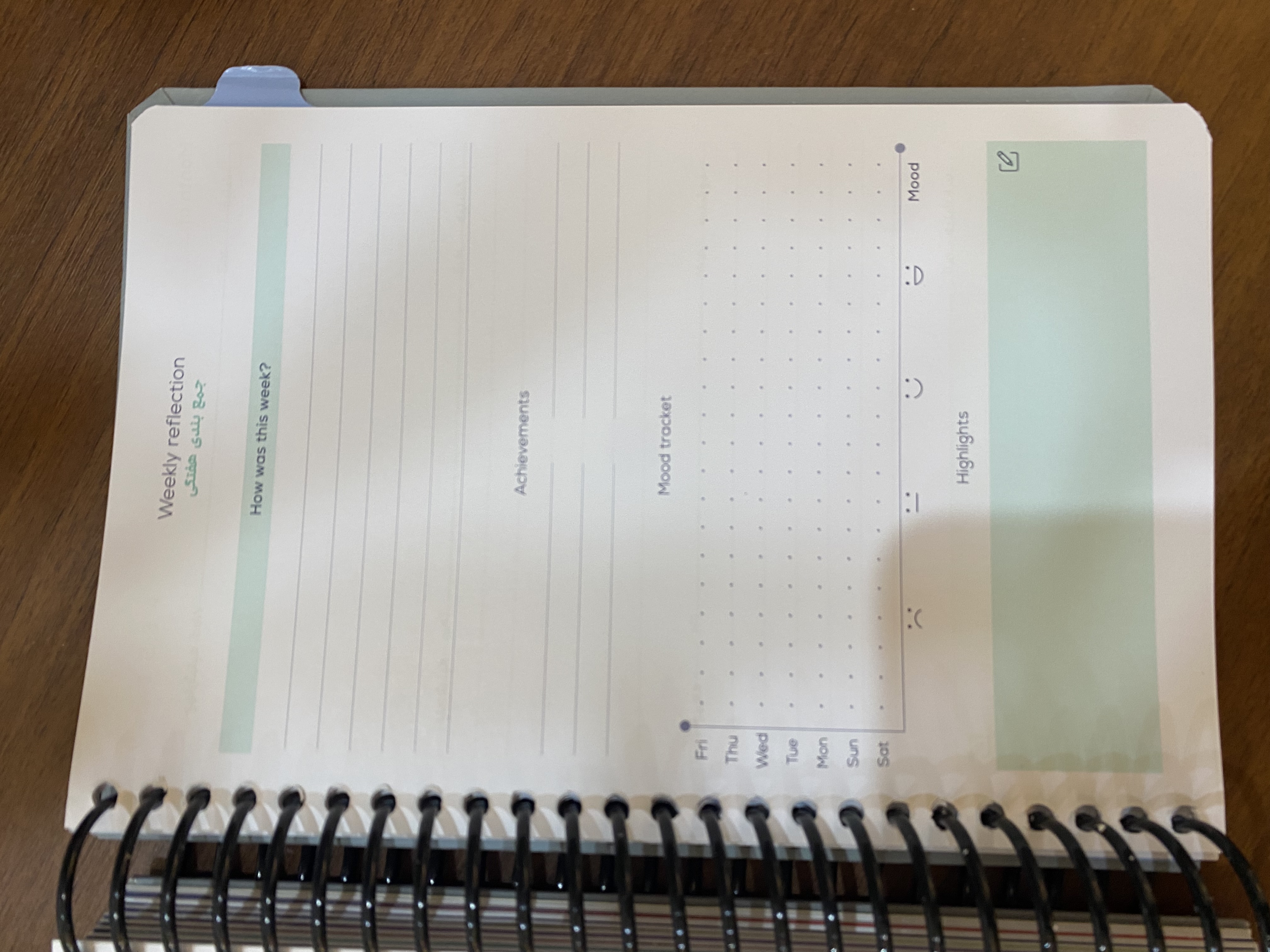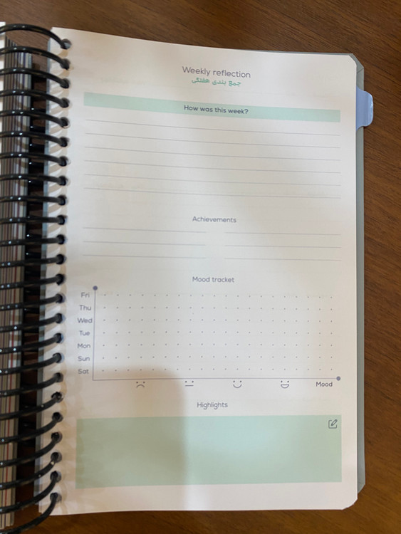 -صفحات شامل: لیست فیلم و کتاب و آرزوها -اهداف سالیانه و ماهیانه و هفتگی -برنامه ریزی کلی سالانه و روزانه -جمع بندی هفتگی و ماهیانه -ردیاب عادات و خواب -یک صفحه استیکر -دیوایدرهای جداکننده ماهانه